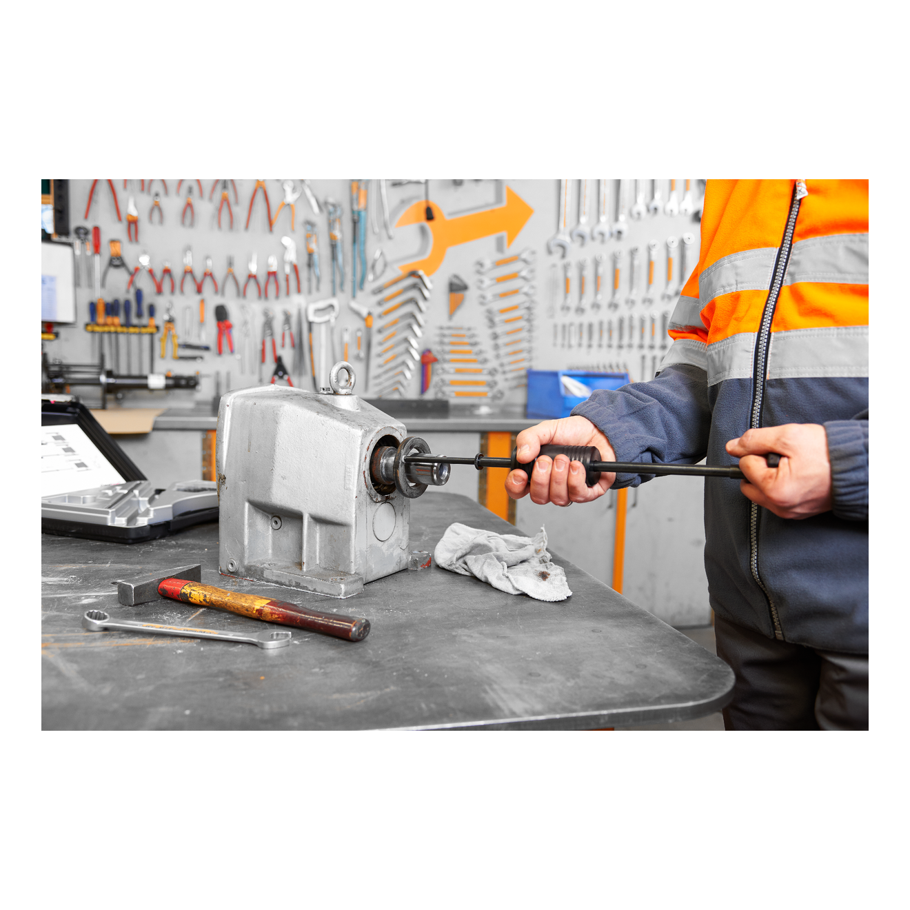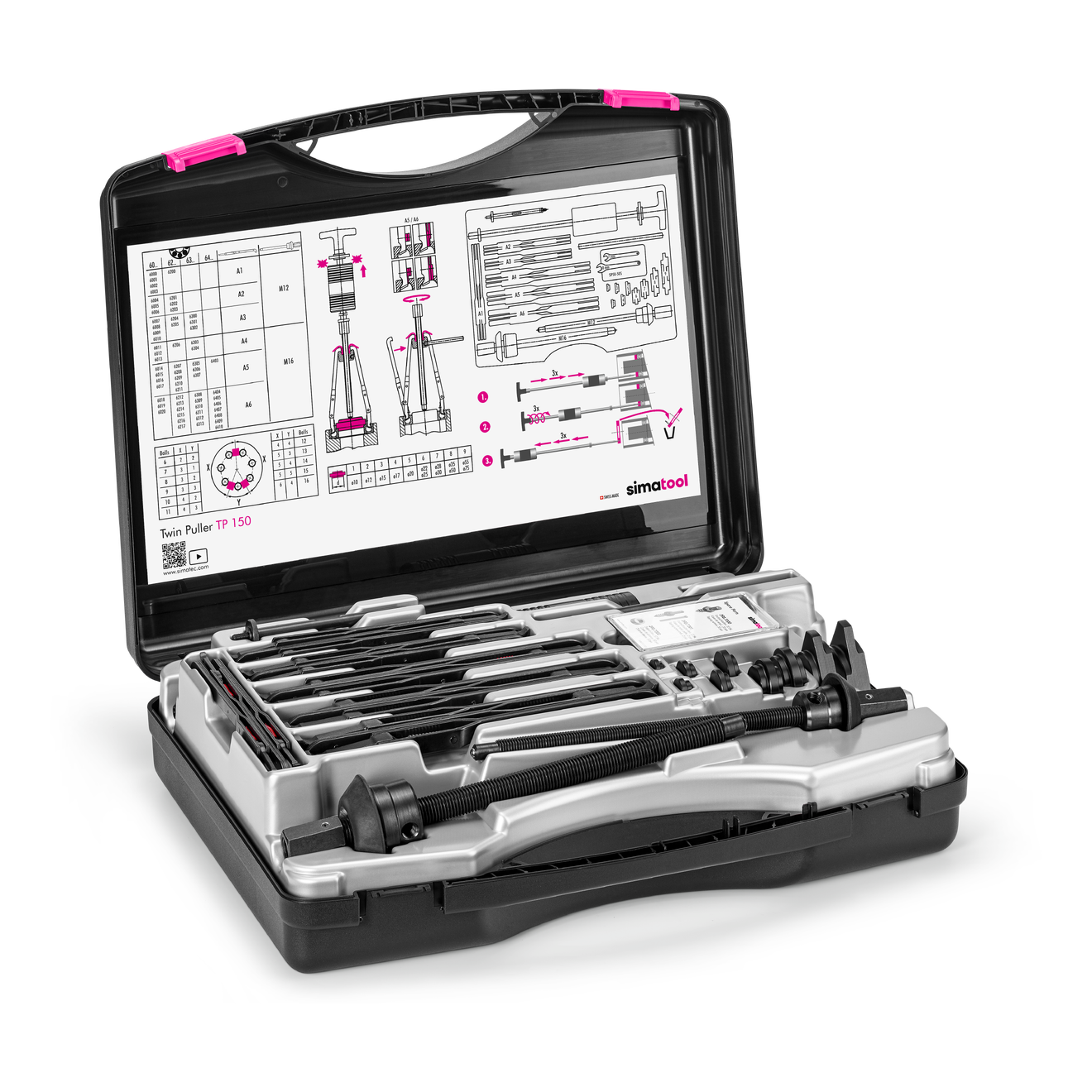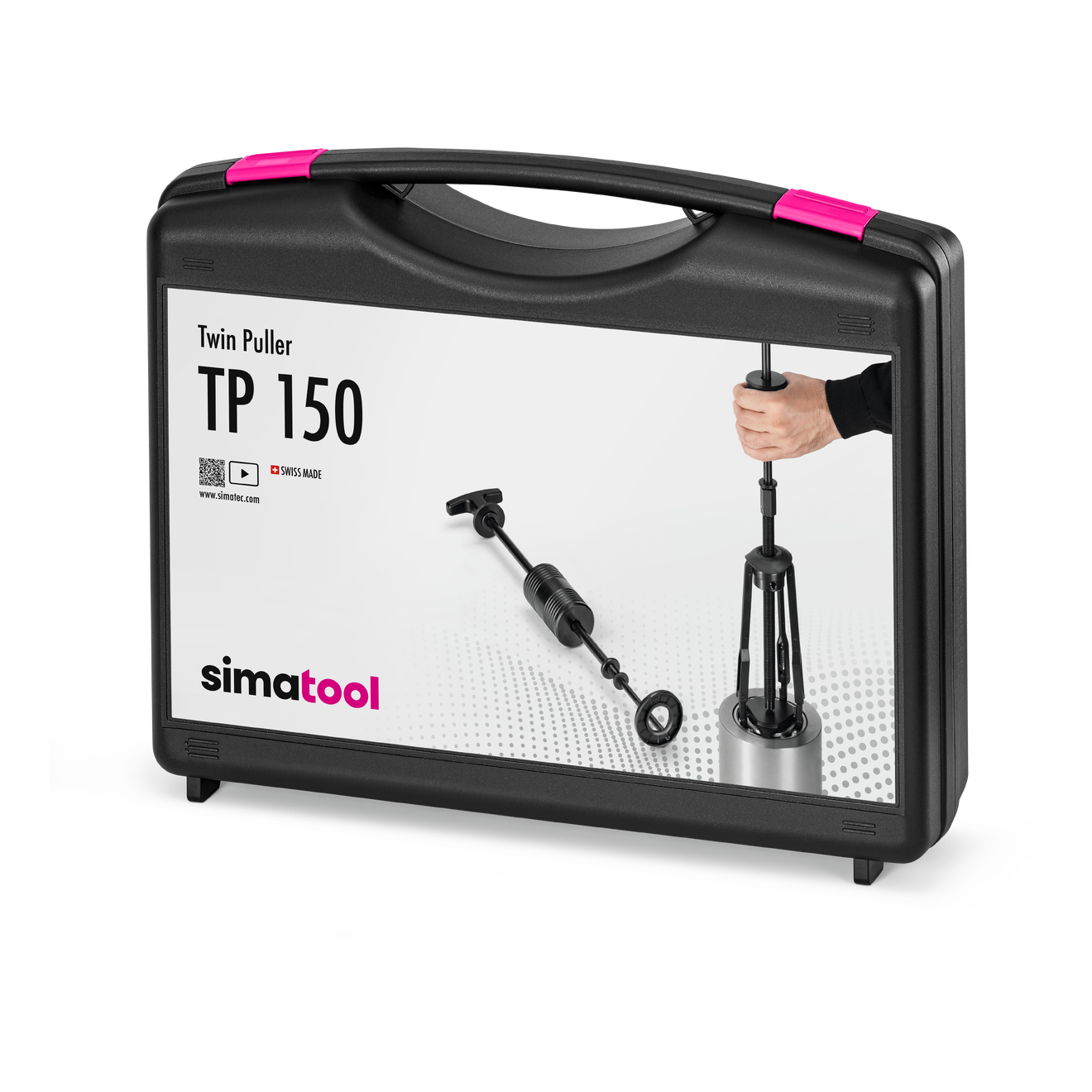 The simatool Twin Puller TP 150 can be used to expertly dismount deep groove ball bearings and radial shaft seals. Bearings with a tight fit on the inner or outer ring can be quickly and reliably dismounted with the help of this tool. The TP 150 can also be used to dismount shaft seals, thus making it a unique and professional dismounting tool.