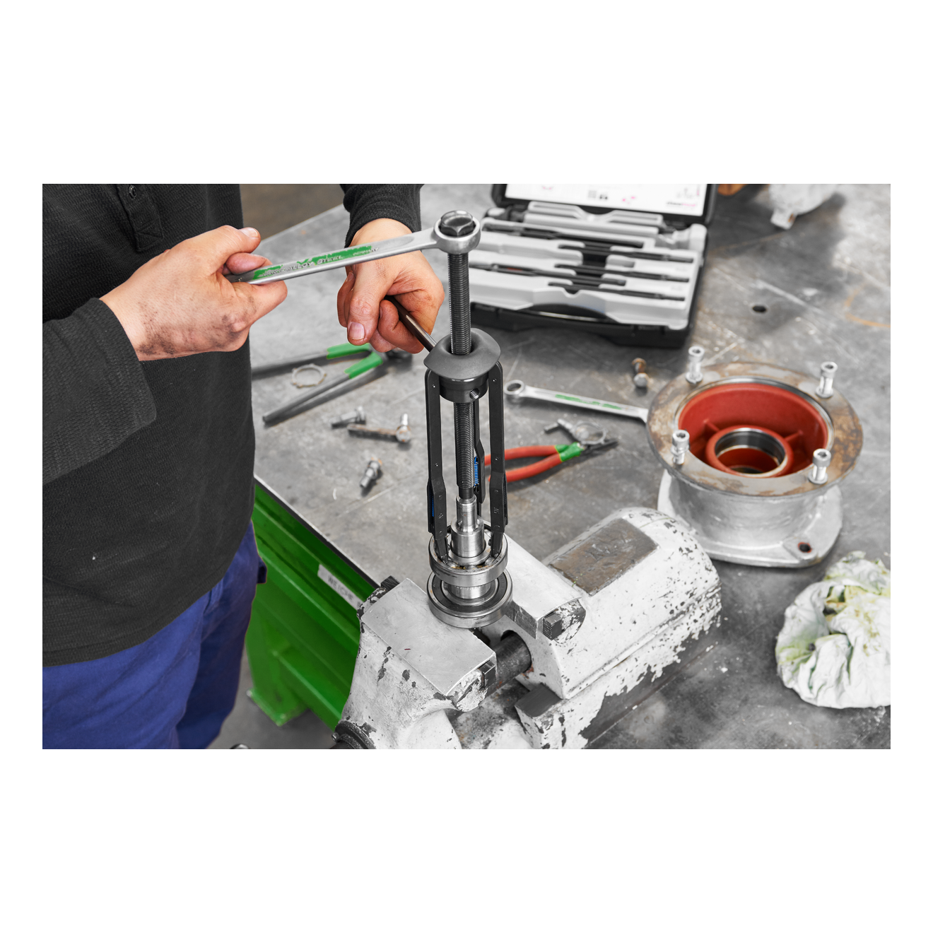 Professional puller kit for removing large deep groove ball bearings (30-160mm) from shafts and housings.